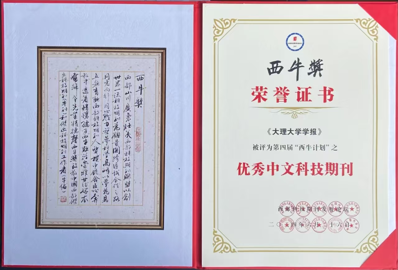 近日,从西部科技期刊发展论坛组委会开展的第四届“西牛计划”评选活动获悉,《大理大学学报》被评为优秀中文科技期刊、优秀创新平台。